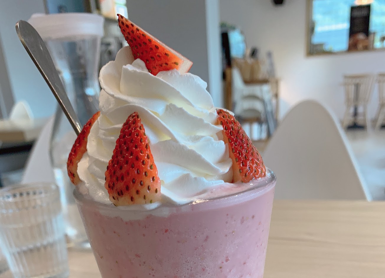 草莓舒芙蕾棉密,草莓好吃又不會太小顆稍有份量,重點是不會太甜,適合不愛吃甜點的我