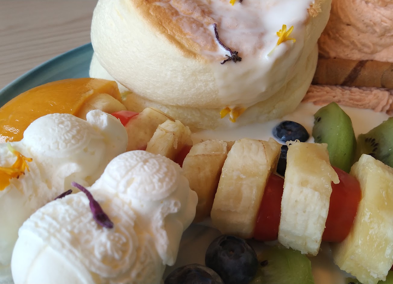 舒芙蕾鬆軟好吃,與脆片搭配,口感變得有層次。配料也很豐富繽紛。