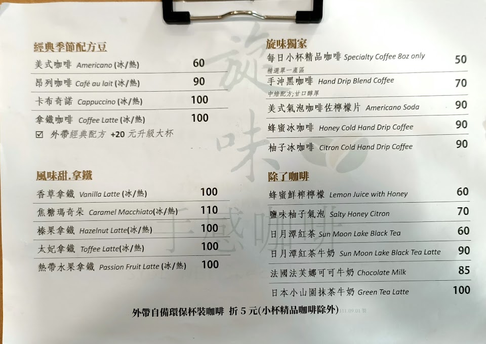 2024最新在地推薦餐廳的菜單_旋味手感咖啡的菜單、圖片