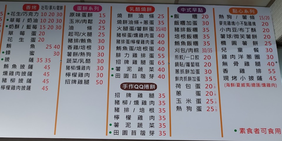 份量滿多的,且很便宜,在這物價驚人的時代,這樣點,還能在180,比很多早餐店便宜,且停車方便,店給人的氛圍,有種鄉村的親切感,圓圓那顆,是小披薩,不會乾,且QQ的,原本想吃蘿蔔糕蛋餅,可惜我太晚去賣完了,平日會比較早結束營業,假日的時間跟Google一樣,環境還算可以接受,因為在17線旁,所以很好停車(不用在市區找個車位,找了很久,隨意停馬路中間的可以省略)。