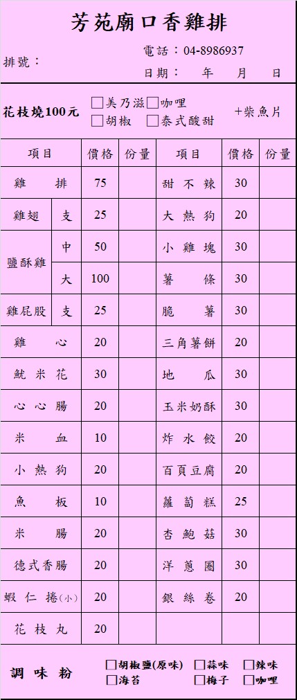 2024最新在地推薦餐廳的菜單_芳苑廟口香雞排的菜單、圖片