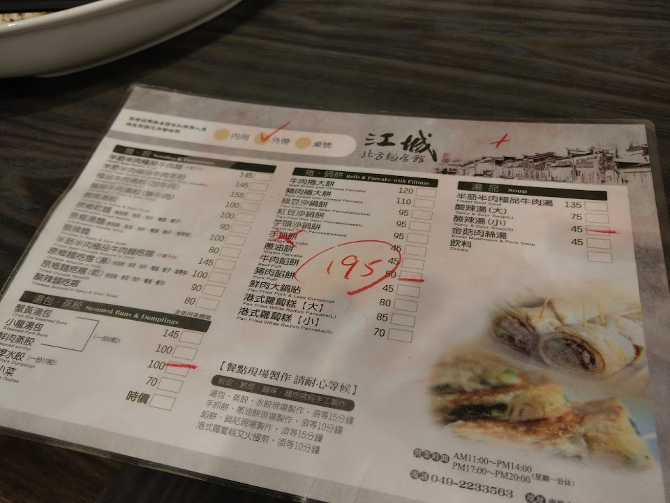 牛肉麵的牛肉跟麵都算南投有水準的 但價位偏高……….蔥油餅也很棒 解封後客人也蠻多