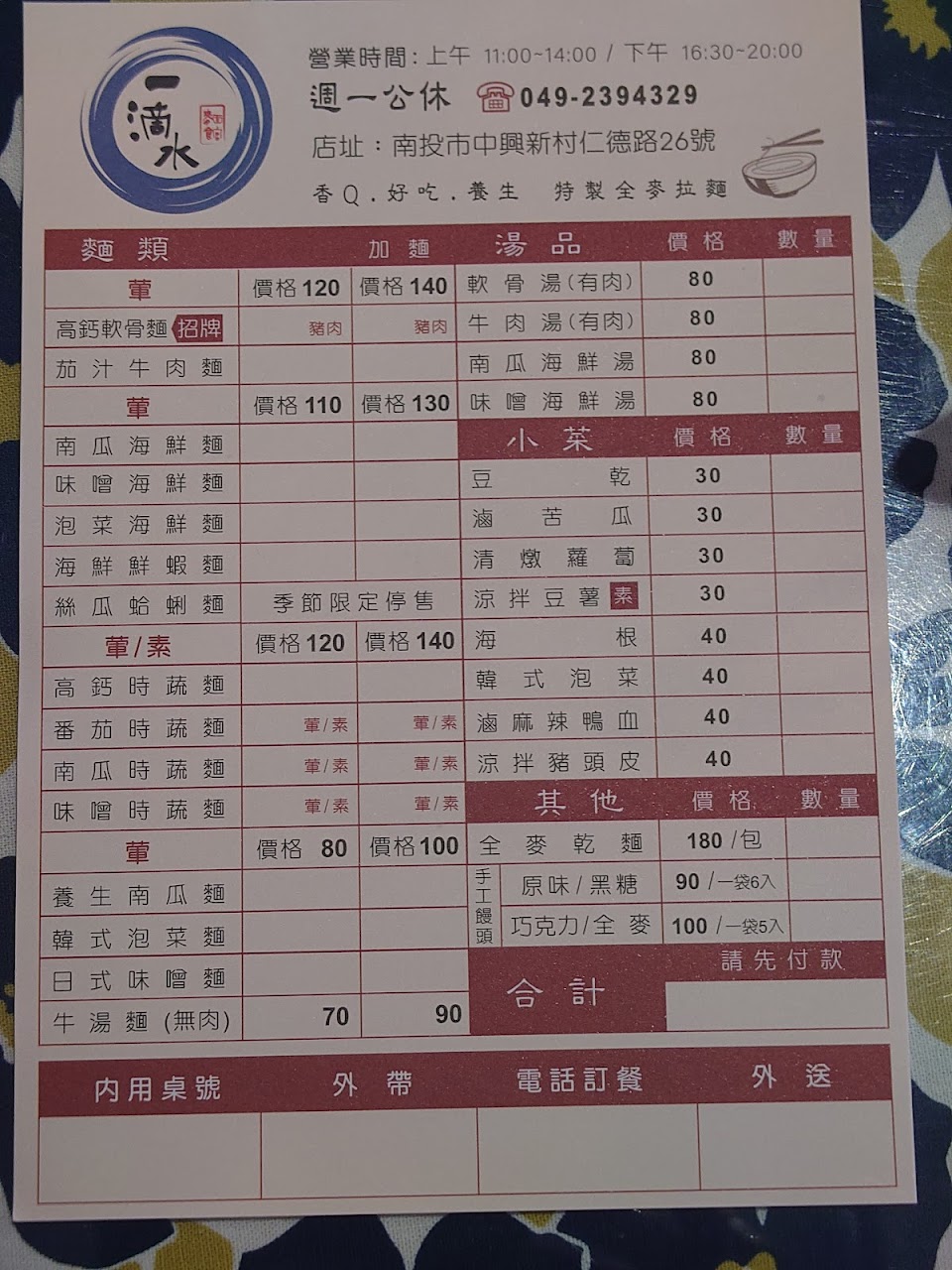 今天跟同事在一滴水麵館訂了10幾碗麵,請他們送到南崗這,外送服務好,餐點和數量也都正確,讚