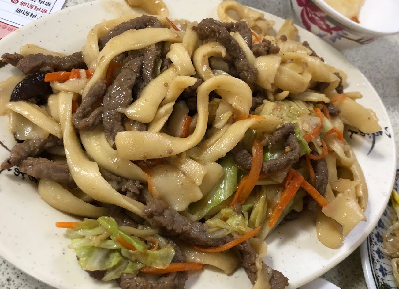 吃超過20年,改版後來吃過不下10次,口味還是熟悉的外省口味,普遍必點的牛肉餡餅跟蒸餃都不錯,但需要注意的是蒸餃是韭菜口味,要看個人喜好而做選擇,而牛肉餡餅屬於多汁偏皮厚的類型,咬下的口感十分扎實,肉香四溢久久吃一次還是很棒的。而個人最喜歡的是豬肉炒麵,以刀削的方式所呈現的炒麵加上麻醬香是每次必點的項目,但點牛肉炒麵就沒有這種感覺,另外喜歡蔥油餅或是酸辣湯的話也可以在此店家嘗試看看!