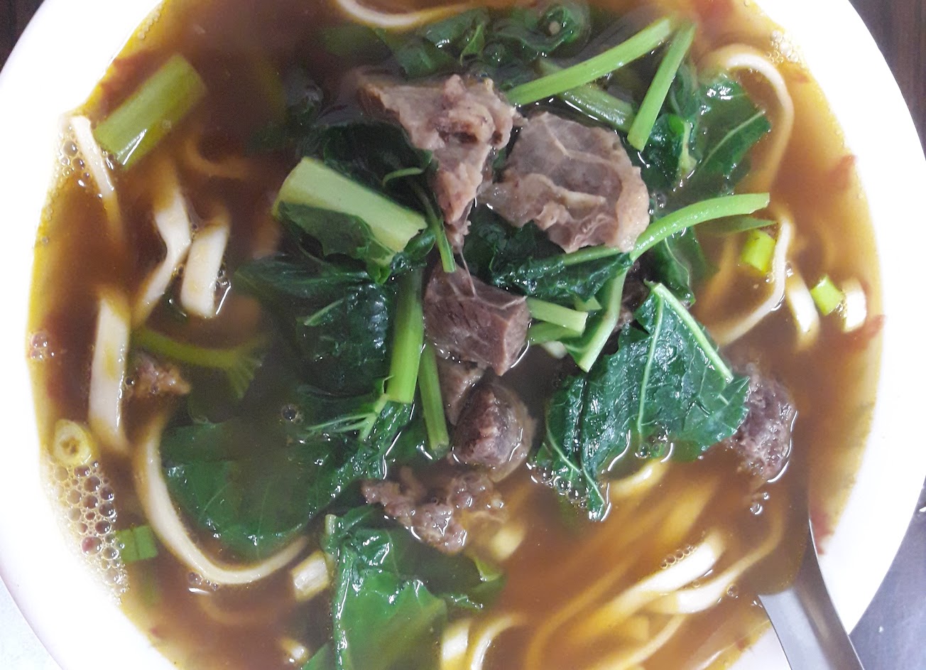 牛肉麵有很多空心菜,湯頭很不錯,麵是寬厚的,也很好吃,一碗90元