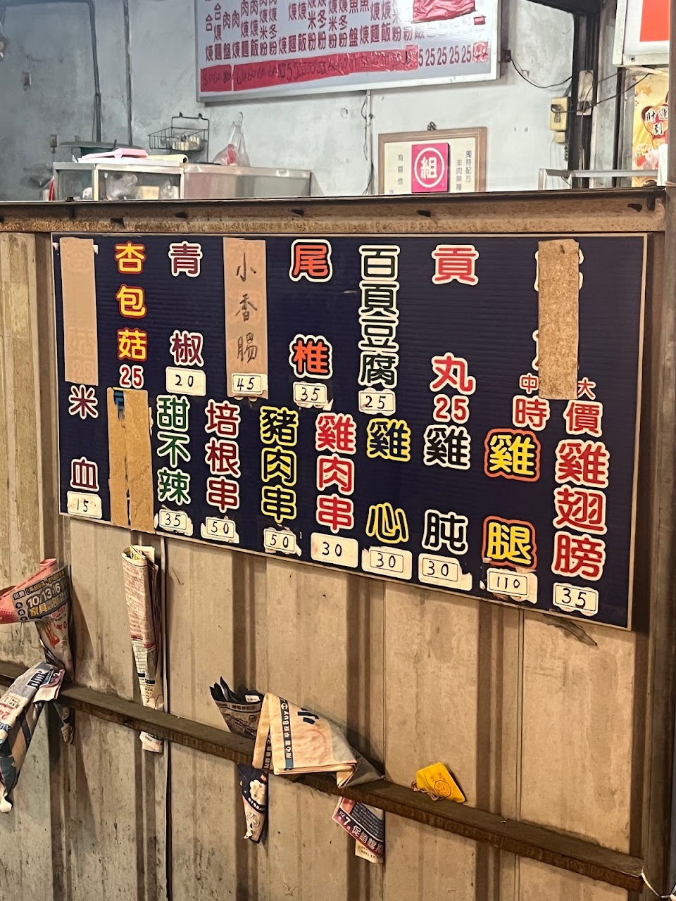 我推薦雞屁股、甜不辣、雞翅、蔥肉串!