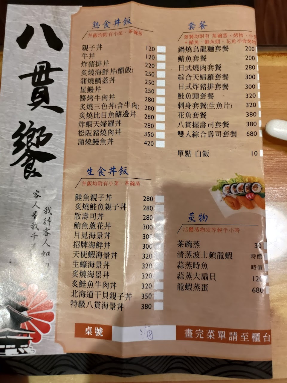 從民族路的小店搬過來公園邊也有幾年了,八貫饗一直是我在南投時想吃日式料理的首選,雖然附近停車位不好找,有時我會停在家樂福再走一小段過來,假日要提早訂位,若訂不到位,改為外帶也可以是一種選擇。