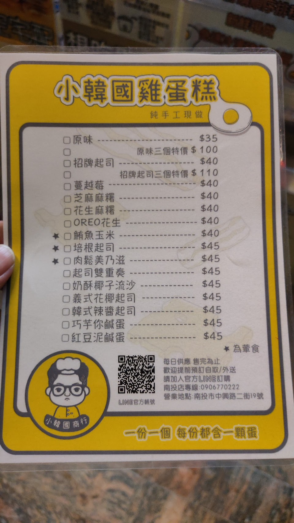 2024最新在地推薦餐廳的菜單_小韓國雞蛋糕 南投店的菜單、圖片