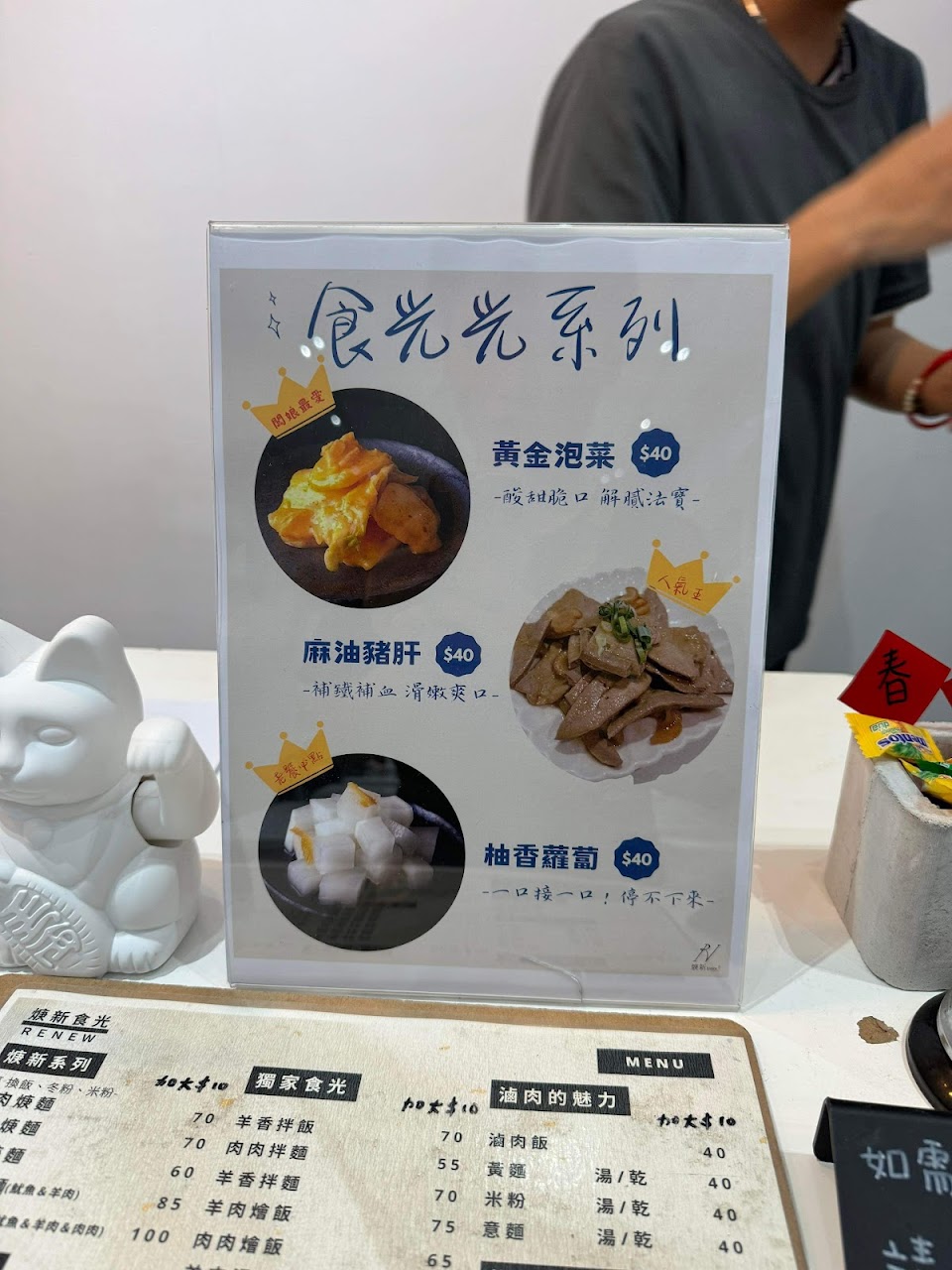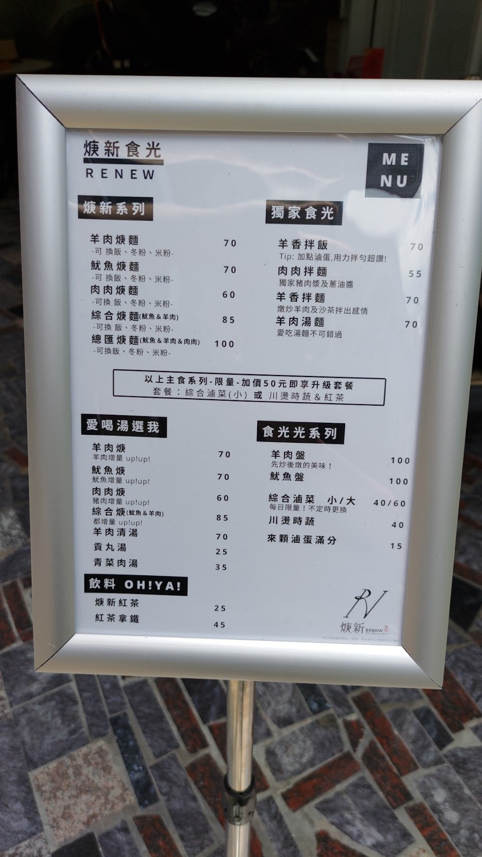 乾淨的店面,白色主題的裝潢在巷弄間顯得獨特。美食飯麵都可以選擇,還可以升級套餐(➕飲料小菜)