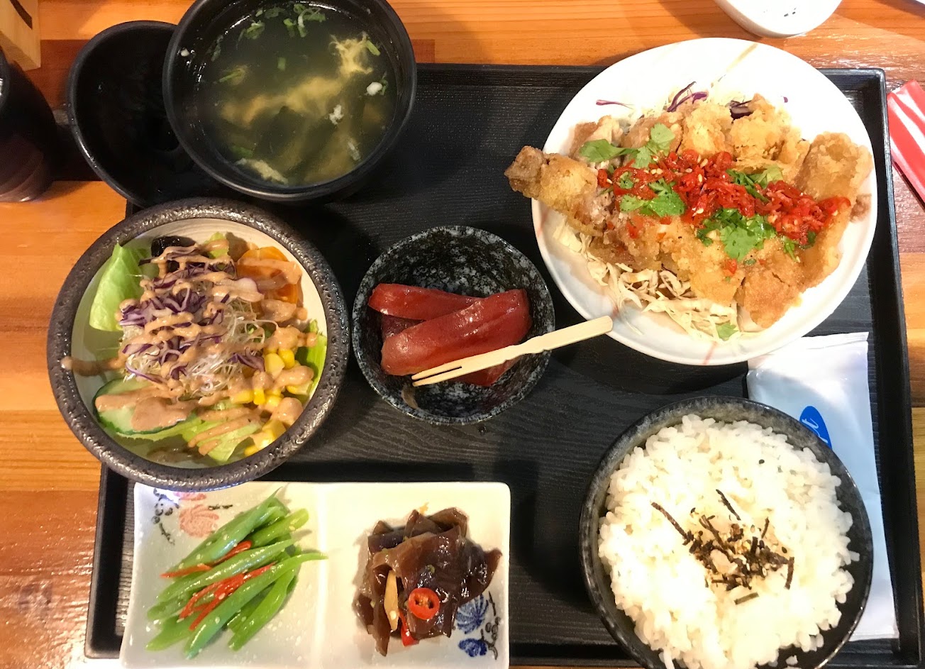 厚切豬排鮮嫩多汁,三杯雞定食肉嫩夠味,牛柳根本是切好的牛排,唐揚雞也是肉質鮮嫩,定食配菜跟湯也很好吃,歐姆蛋跟咖哩也是絕配,環境也很乾淨,非常推薦的優質餐廳。