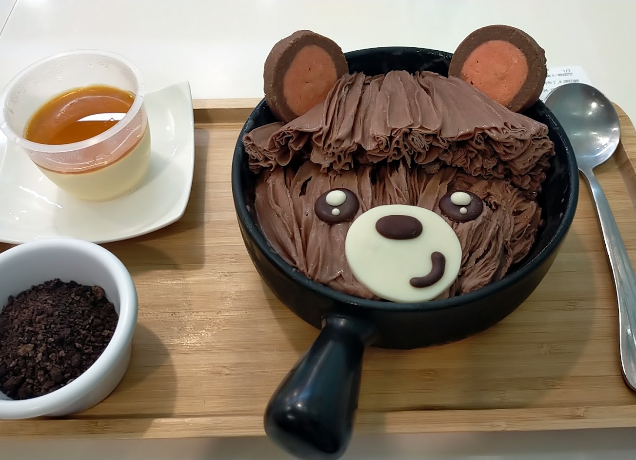 很好吃! 加60元就可以擁有小熊造型的冰! 老闆人很好還招待一個配料~٩(˃̶͈̀௰˂̶͈́)و