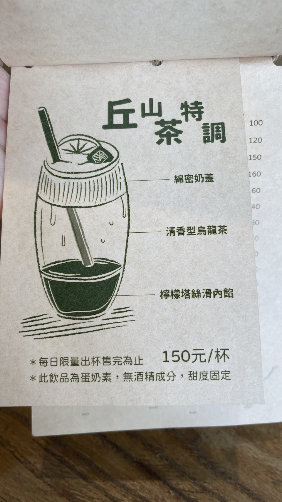 甜點以現場櫃檯為主,也有茶以外的飲品 點了杯茶特調,很特別有奶蓋+茶+檸檬酸甜不膩,口味個人蠻喜歡的♥︎~女生應該會比較喜歡,不喜歡檸檬微酸的男生朋友不建議啦