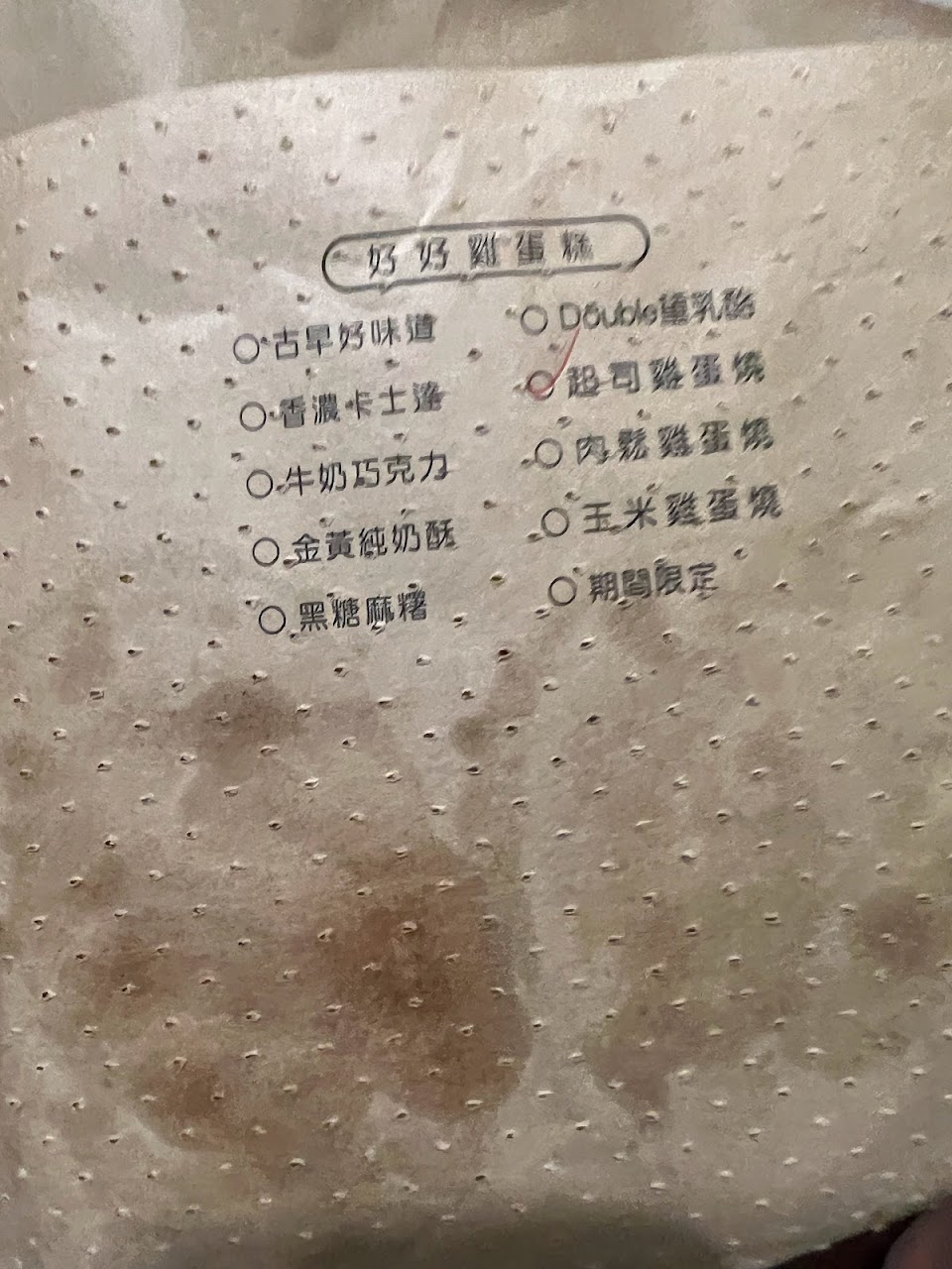 非常好吃的雞蛋糕,用料飽滿、實在,店員也很親切,原本以為是一般的時薪的雞蛋糕沒想到,是有包餡料的類型。非常特別、好吃。
