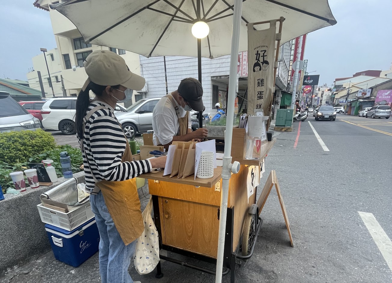 特別的在地雞蛋糕店,是走小攤車那種的,感覺像是一對夫妻一起經營的,當天是先打電話預定,大約15分鐘就好了,這次點了巧克力、卡士達,外皮吃起來鬆軟,趁熱吃一咬下去會爆漿,吃起來嫩嫩的,微微蛋香,吃起來好吃,下午茶的好朋友,大小約一個手掌心大,還有烙印好好雞蛋糕的招牌,下次再光顧。