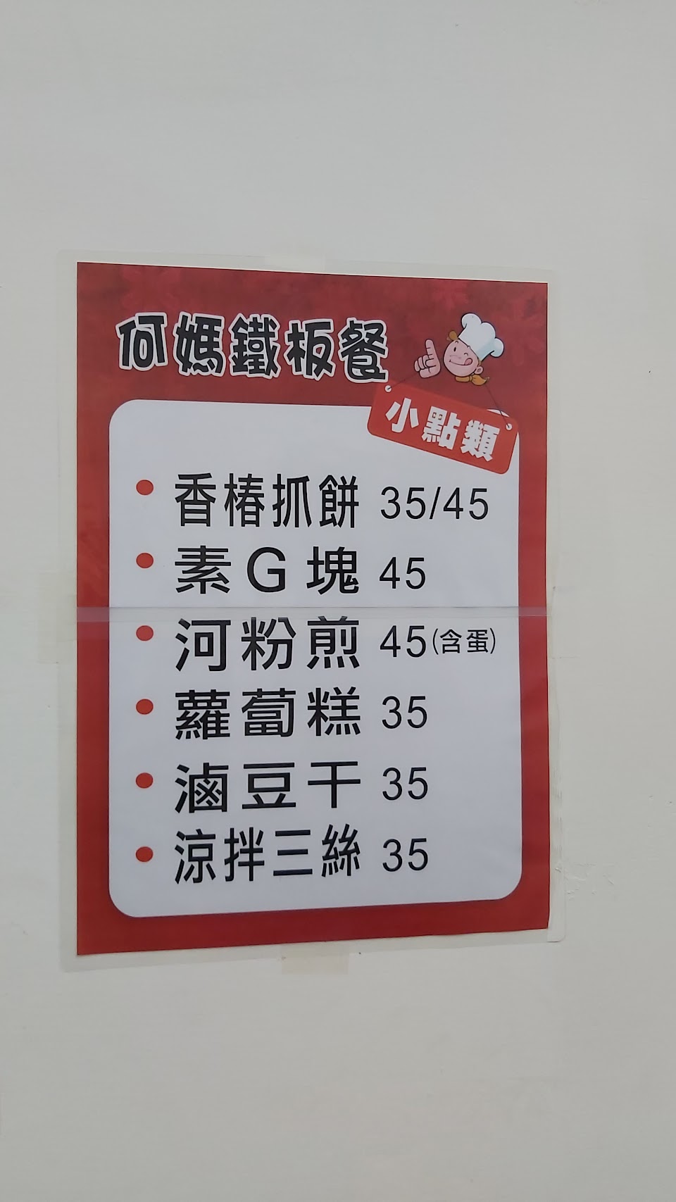 每次寒暑假孩子一定要來吃何媽,因為太好吃了!份量足夠,香椿抓餅,抹上特製醬汁,超級好吃!滷豆乾,必點!軟嫩入味,大人小孩都喜歡!