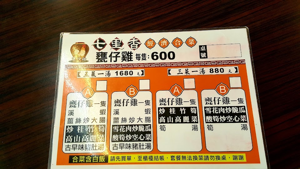 2024最新在地推薦餐廳的菜單_七里香甕仔雞-猴探井店的菜單、圖片