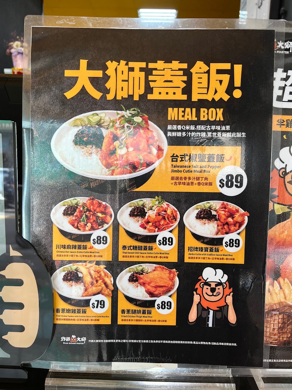 有賣蓋飯的炸雞店,獅王腿排不錯吃。