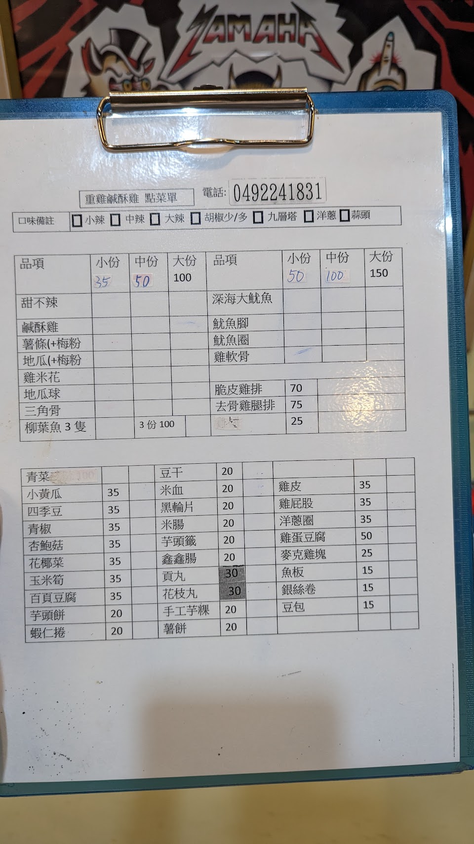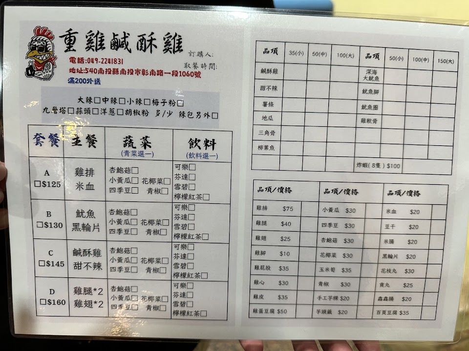 2024最新在地推薦餐廳的菜單_重雞鹹酥雞的菜單、圖片