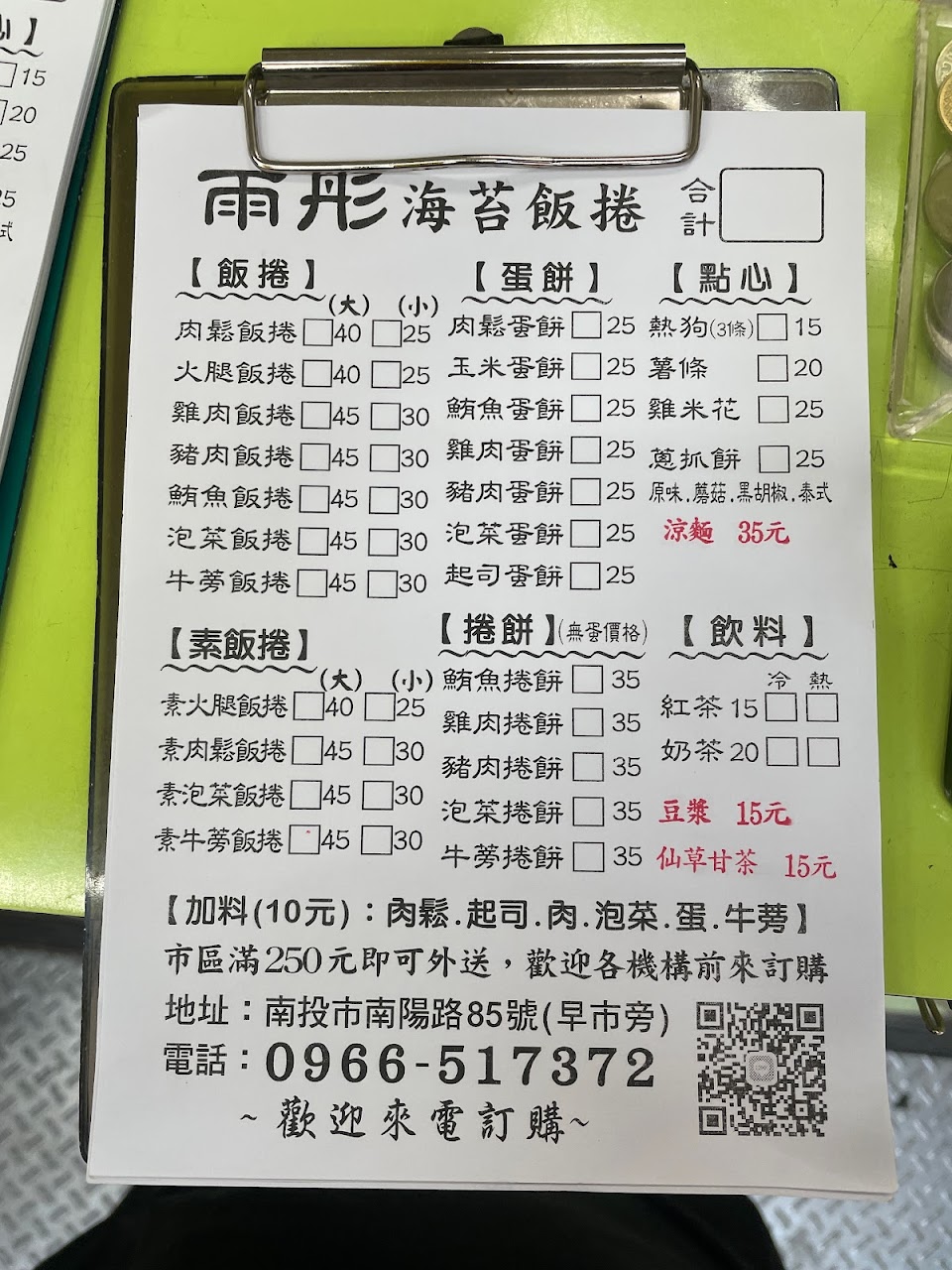 2024最新在地推薦餐廳的菜單_雨彤海苔飯卷(南揚店)的菜單、圖片
