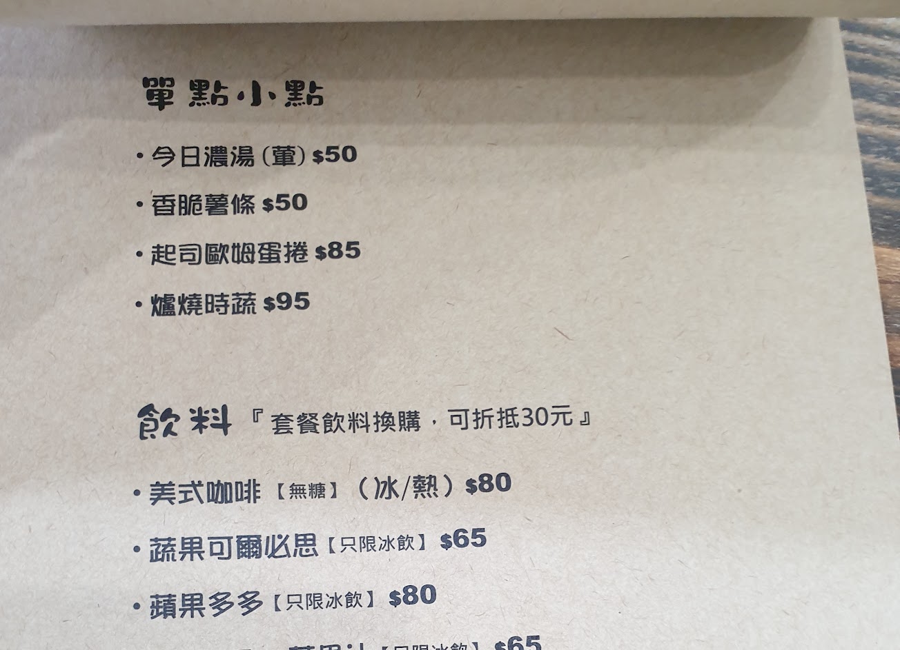 餐點美味,服務親切,小小建議:排餐白飯改成選配,或者搭配沙拉、水果讓顧客能挑選應該也不錯。