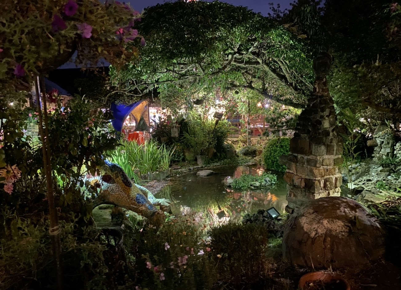 外面的花園很可以,太晚到只能拍夜景,建議早點到拍黃昏跟晚景,夜晚花園還燒炭火加音樂很可以?餐點普普,價格一人約700,有自助吧可吃到飽,主餐食物口味略遜色,花園拍照加分 …