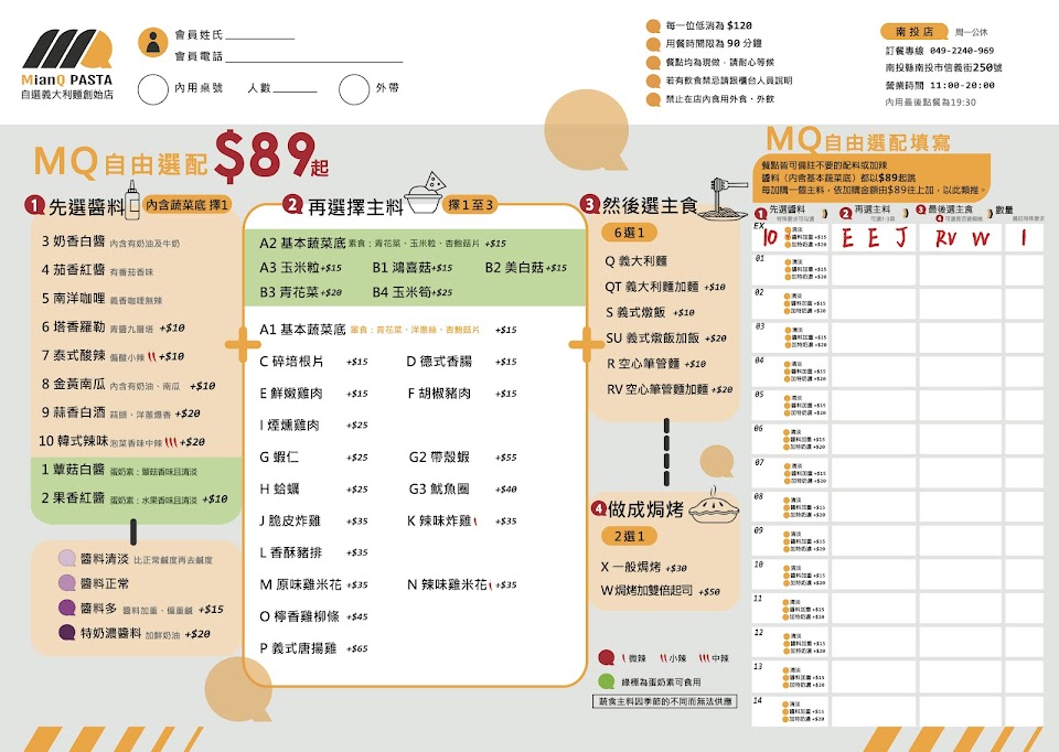 2024最新在地推薦餐廳的菜單_MianQ PASTA自選義大利麵餐廳 南投店的菜單、圖片
