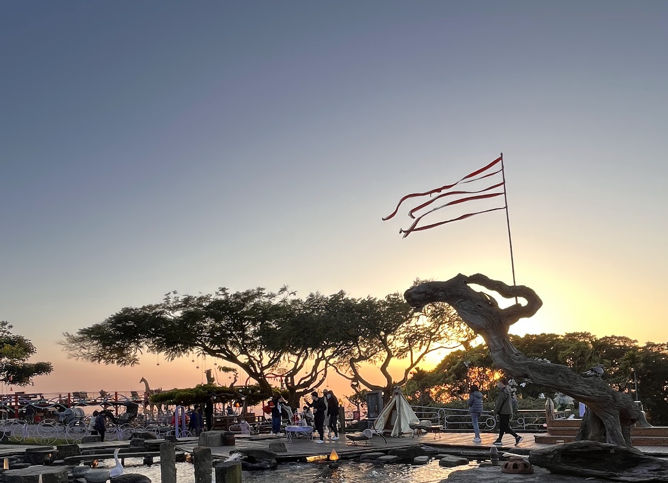 建議可以下午四點多入園,先在園區逛逛,觀賞巧思設計的創意小區,和可愛動物合照。五點半至餐廳點餐就座,邊用餐邊欣賞落日美景!落日餘暉後,壯闊的夜景緊接著上場,啜飲餐後飲品觀賞夜景,園區呈現和白天不同的風貌⋯同樣的迷人