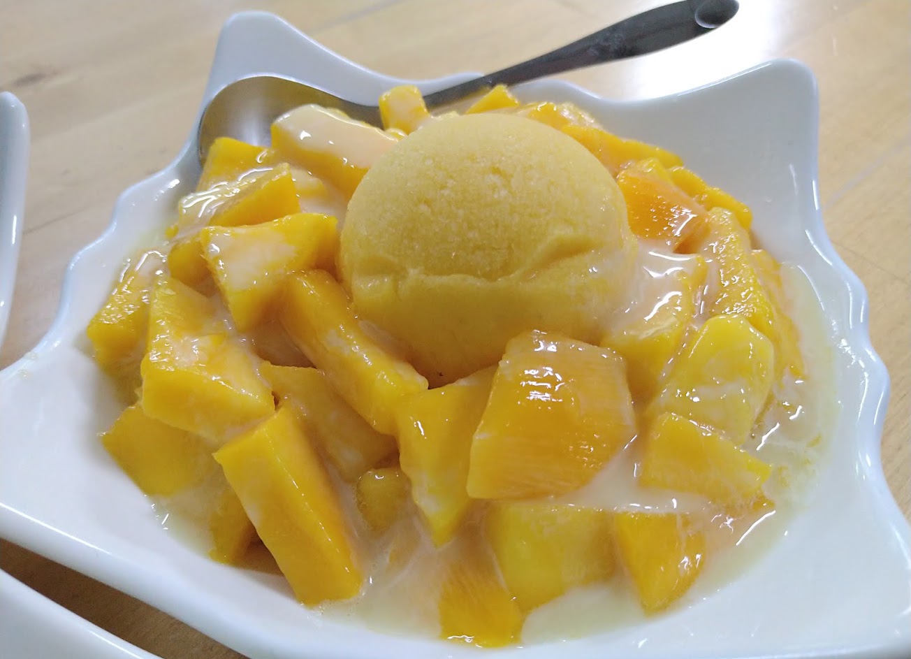綿綿冰好吃,超級芒果爽也是,原以為最上面那球是冰淇淋,結果想不到是綿綿冰? …