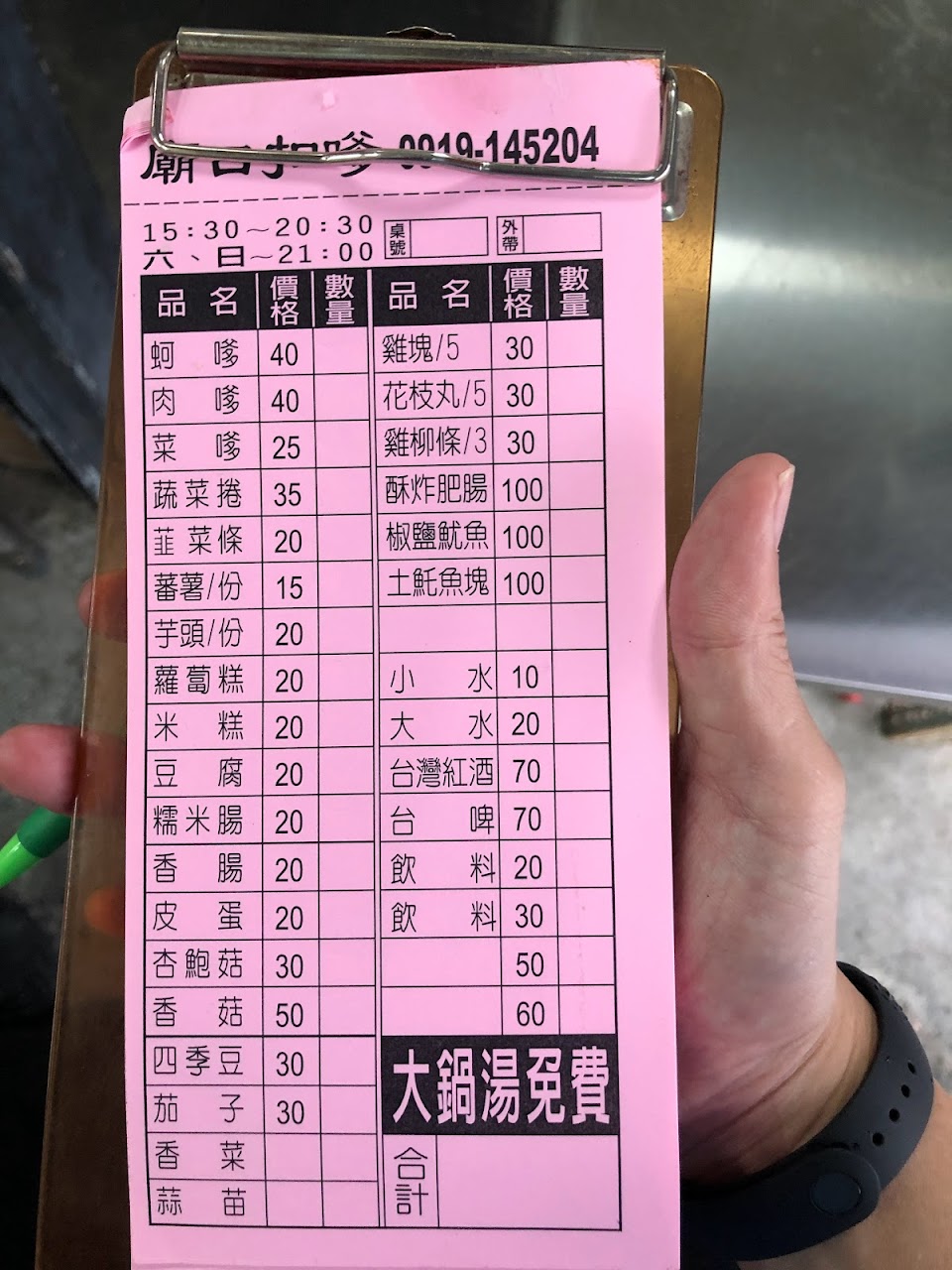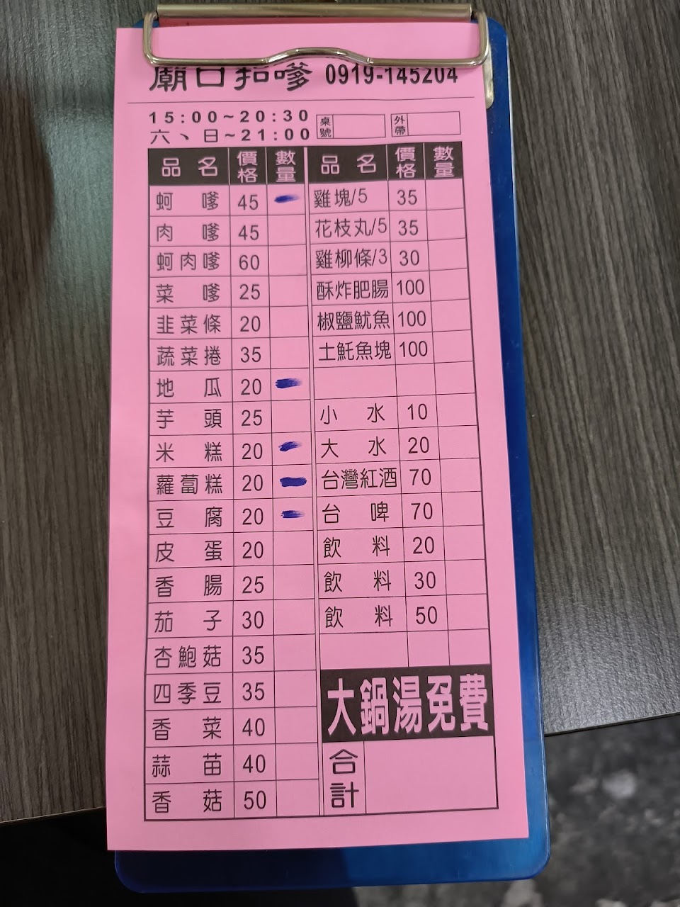 烤類米血和百頁,非常驚艷。炸的豆腐和地瓜意外的好吃,反而是蚵嗲炸過頭了,非常硬,反而沒那麼好吃,但是店家還提供熱湯,非常貼心。