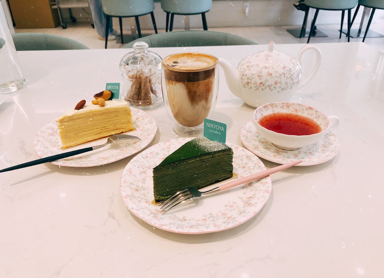抹茶焦糖塔很讓人驚豔,還好有提前預定,當時一起進店內的客人沒有預定就只剩蛋糕可以選了