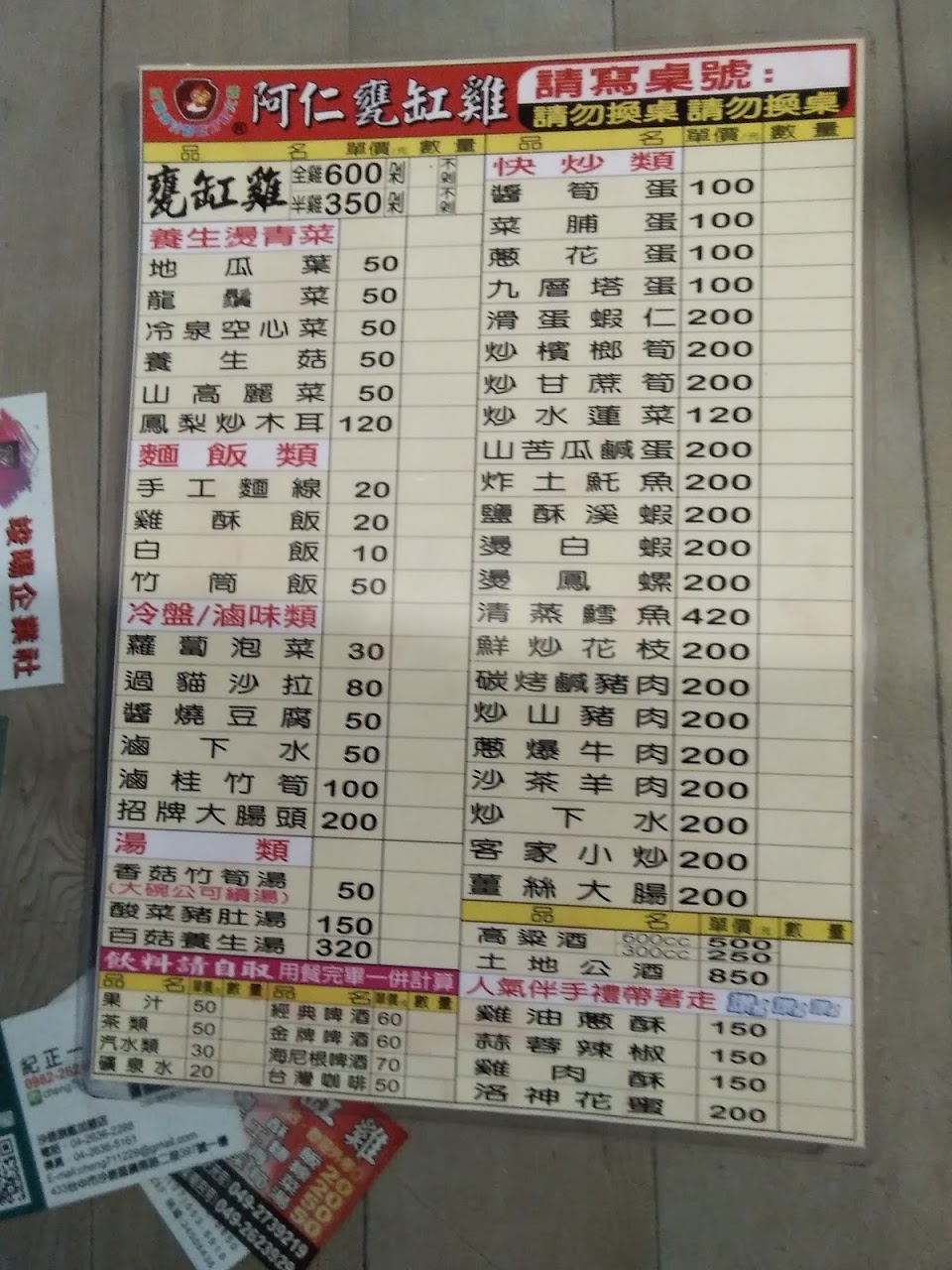 2024最新在地推薦餐廳的菜單_阿仁甕缸雞-名間店的菜單、圖片