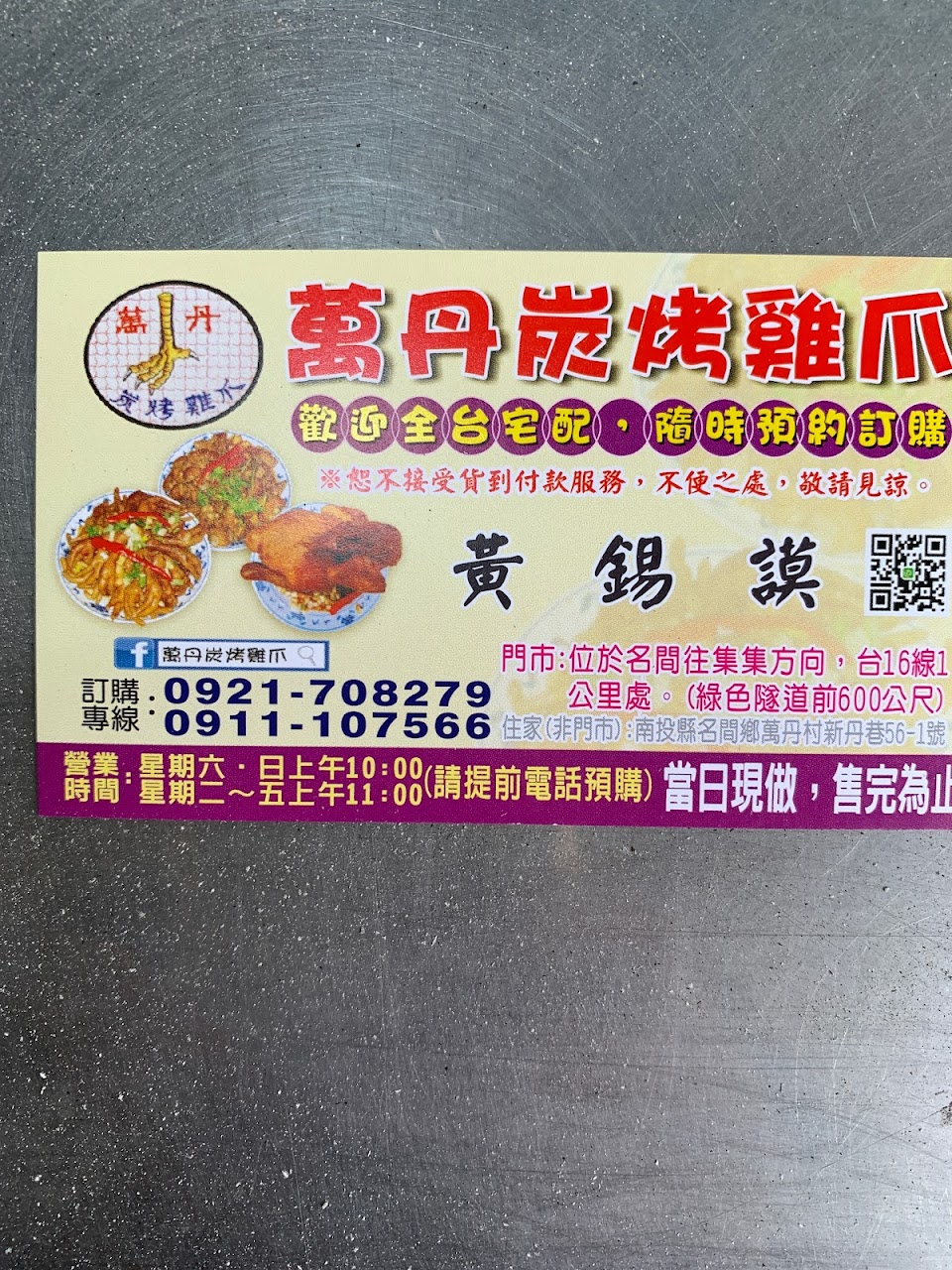 騎車兜風經過時聞到炭香的味道,看到不少車輛停下購買!於是乎也跟風排隊! 真的好吃!味道超棒!價格也不算太貴!停車的地方就停路邊就好(非違規停車)!但這邊下午車流量大,所以還是得小心! 現場排隊需要再花費20分鐘左右等待,諾不耐久候就先打電話預約吧!省下不少時間! 整體評價給四顆星,其實沒什麼挑剔的,但烤好剛出爐的雞爪就這麼倒進塑膠袋,實在不太好!看能不能提升! 另外我個人比較喜歡吃熱的!給大家參考