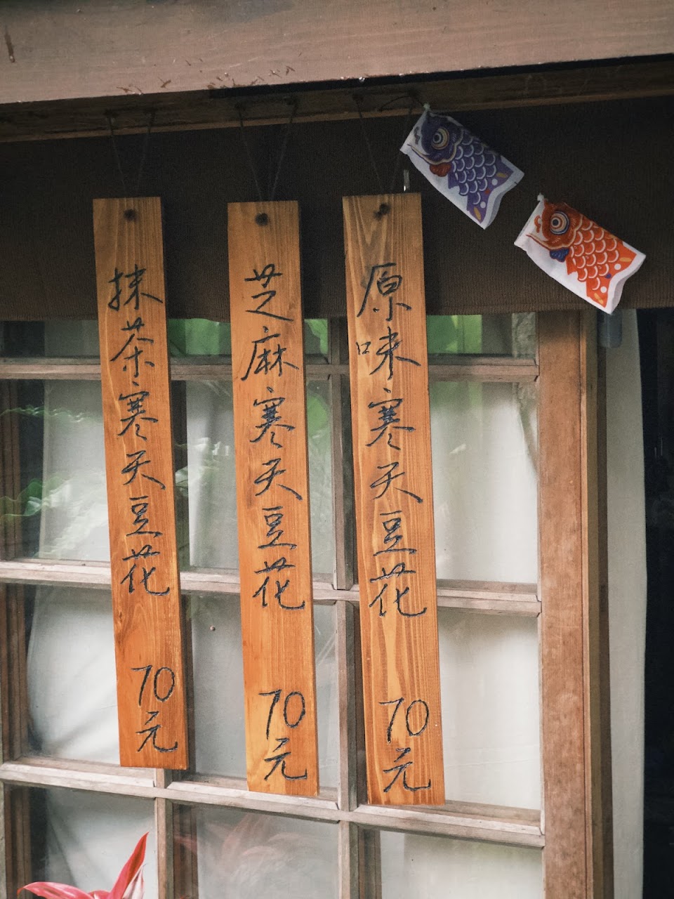 神社裡可愛的豆花店,豆味非常濃的豆花,好像有加寒天所以不是一般會碎碎的豆花,好吃的。