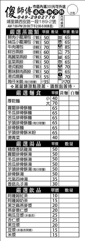 2024最新在地推薦餐廳的菜單_傻師傅湯包埔里店的菜單、圖片