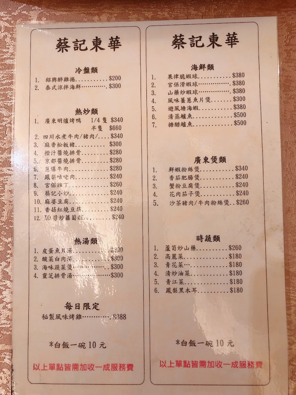 【2019年1月,週末午餐時段】蔡記東華食府非常適合多人旅遊團體聚餐,有大宴會廳和多個包廂房間。菜色豐盛好吃,價格合理。用餐環境較普通。
