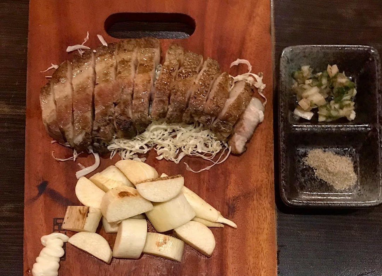 不錯的串燒店,十分推薦烤飯團和烤透抽(還是花枝,我分不清,請看圖片) 飯團烤的外皮有點脆脆的,且涮了許多醬汁,搭配海苔整個很好吃。但因為有涮醬汁,所以吃的時候手會黏黏的。 烤花枝也是很推薦的一道,他烤的剛剛好,花枝咬下去很軟嫩,搭配他們的醬汁和一點檸檬汁,十分爽口。 是我最喜歡的一道。 另外烤魚下巴還不錯,就是要趁熱吃,不然冷了之後就會變得有點噁心。(脂肪的東西冷了,那種味道你懂吧?!)這就不是餐廳問題了,純粹就是魚下巴這東西本來就該熱熱吃。 另外魚下巴沾椒鹽粉,吃起來超讚。