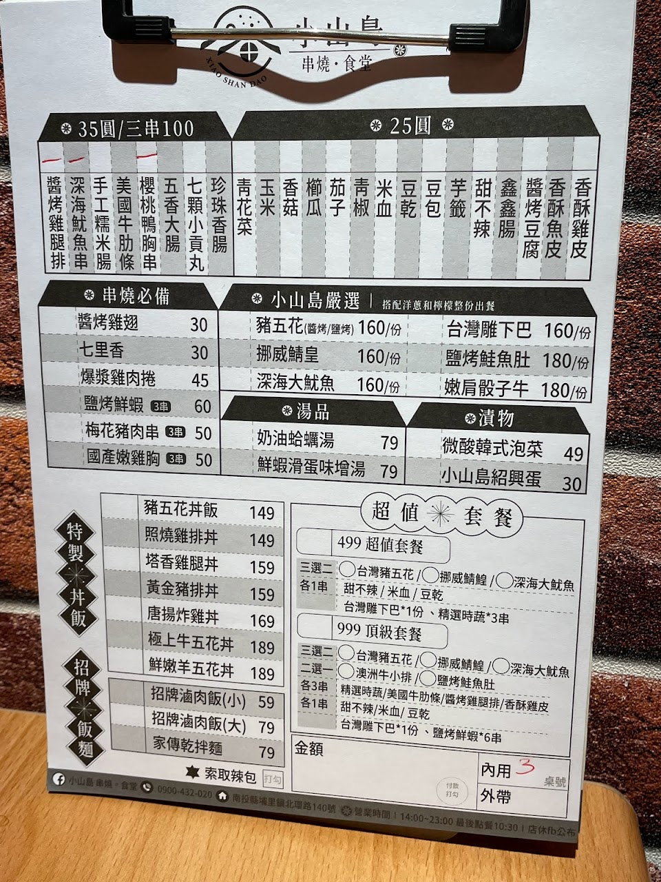 2024最新在地推薦餐廳的菜單_小山島 串燒 食堂-埔里必吃美食|人氣餐廳|推薦餐廳|特色美食|熱門美食|人氣小店的菜單、圖片
