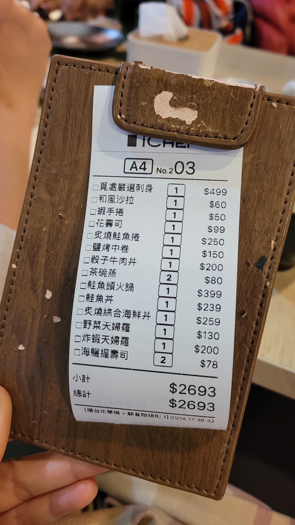 進門後坐在位子上很久了,也沒有拿菜單來,直到我們自己去要,明明沒客人,最後卻把我們從雙人位移到吧檯區 上菜速度慢以外,點了炒烏龍,跟店家要七味粉,一位戴著眼鏡的短髮女店員還特地把整碗麵又搬走拿去撒,然後強調,我們只有豬排飯才加七味粉喔⋯⋯???(後來上的豬排飯也沒有七味粉…) 但裡面有位男師傅,特別撒必死多給了一些其他種類生魚片(非常的感恩),可是…師傅啊…這些生魚片吃起來都不新鮮了…….
