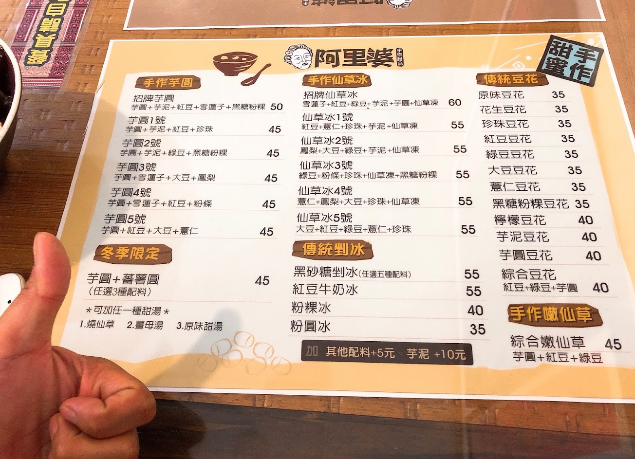 阿里婆手作甜品❤ 突然想吃甜的,google搜尋到這間評價還不錯的小店 在埔里市區內, 附近真的不好停車(不過好像很多人停路邊) 招牌芋圓$50 料多料滿又便宜,CP值高,味道濃郁好吃,和冰搭配起來真的很消暑 也點了珍珠紅茶外帶,紅茶是古早味那種。珍珠偏甜。 店內有美美的藝術插畫。 服務沒遇到不好的店員,所以覺得還行。 下次來埔里還會想來!!超級推薦!!