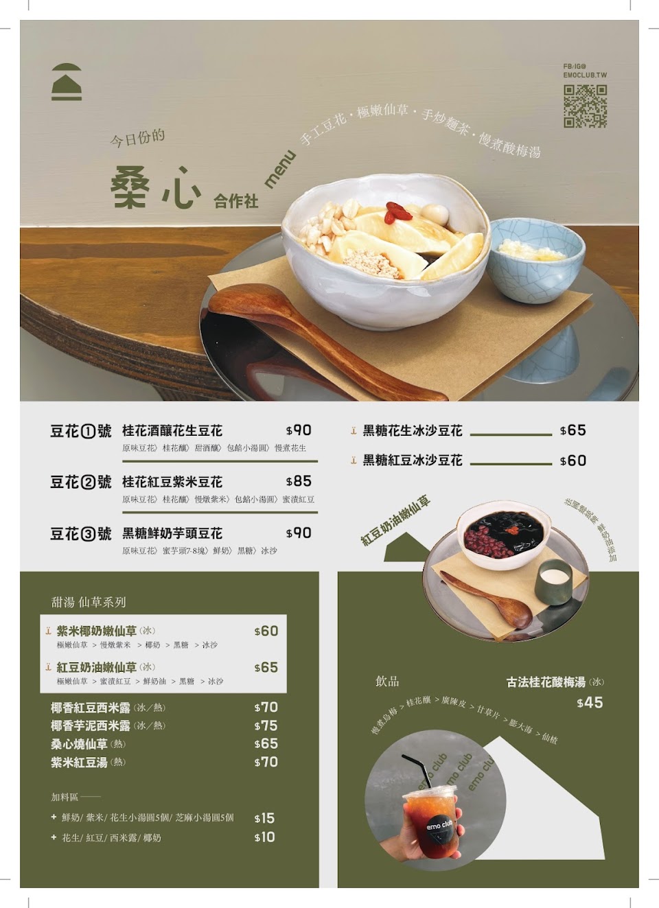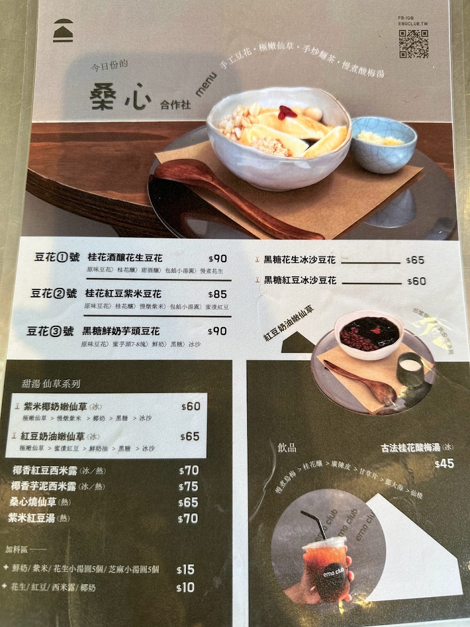 我覺得5個大人帶5個小孩來用餐,小朋友都幼稚園一個還一歲大,怎麼可能一人點一份餐!員工跟老闆也太不會變通了,而且前一桌客人2大一小也才點一份餐點,我們剛好在點餐,聽到老闆在跟另一名員工說怎麼只讓她們只點一份餐點,至少要再叫她點一杯酸梅湯才對!結果我們點了2杯酸梅湯跟一碗豆花,結果店員就說我們五個大人至少要再多點一份餐點,我們只能再加點一份豆花!要不是已經點了餐,我們不好意思走!不然我們就不會想吃了!感受真的是跟店名一樣「桑心」合作社!真心覺得腦闆要變通一下!這樣才能留得住客人的心阿!下次才會想再來!真心建議!不好意思