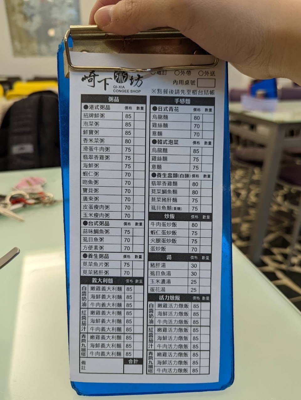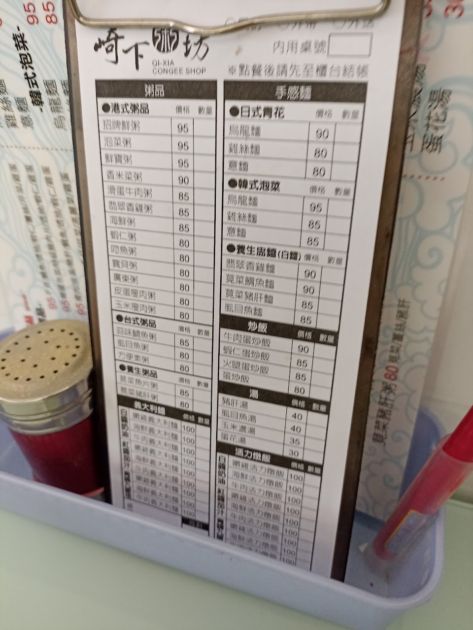 從外地回到崎下,總喜歡在這裡吃碗粥再往坡上的鐵山走,粥的內容簡單但是分量很夠,價格合理,冷天餓肚時來一碗,一定滿意