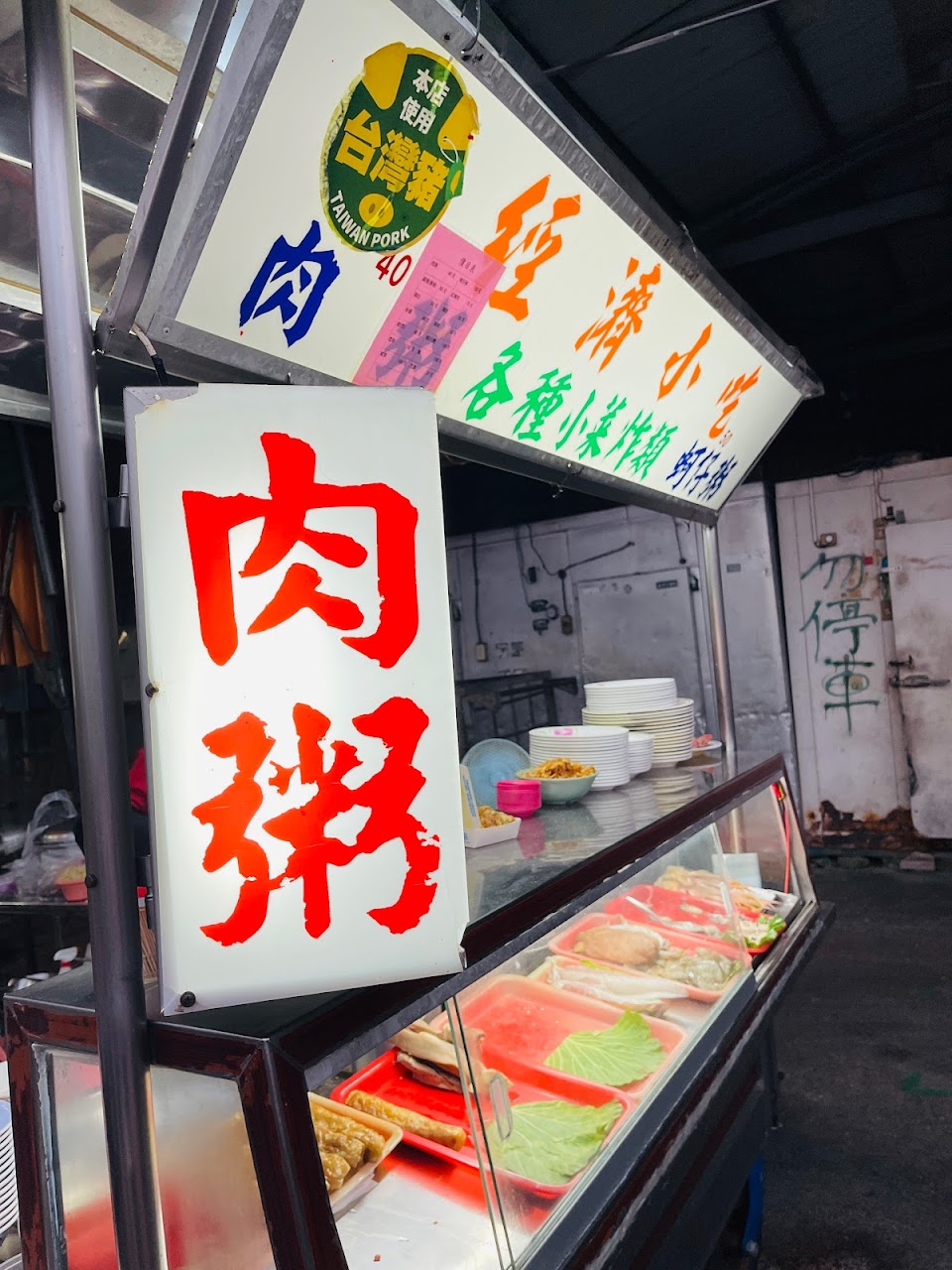 肉粥是非常熱門的小吃攤,殊難想像熱門到還要排隊才能享用!餐點的內容非常的簡單:肉粥、蚵仔粥、炸豆腐、粉腸、魷魚、蝦子、小卷。