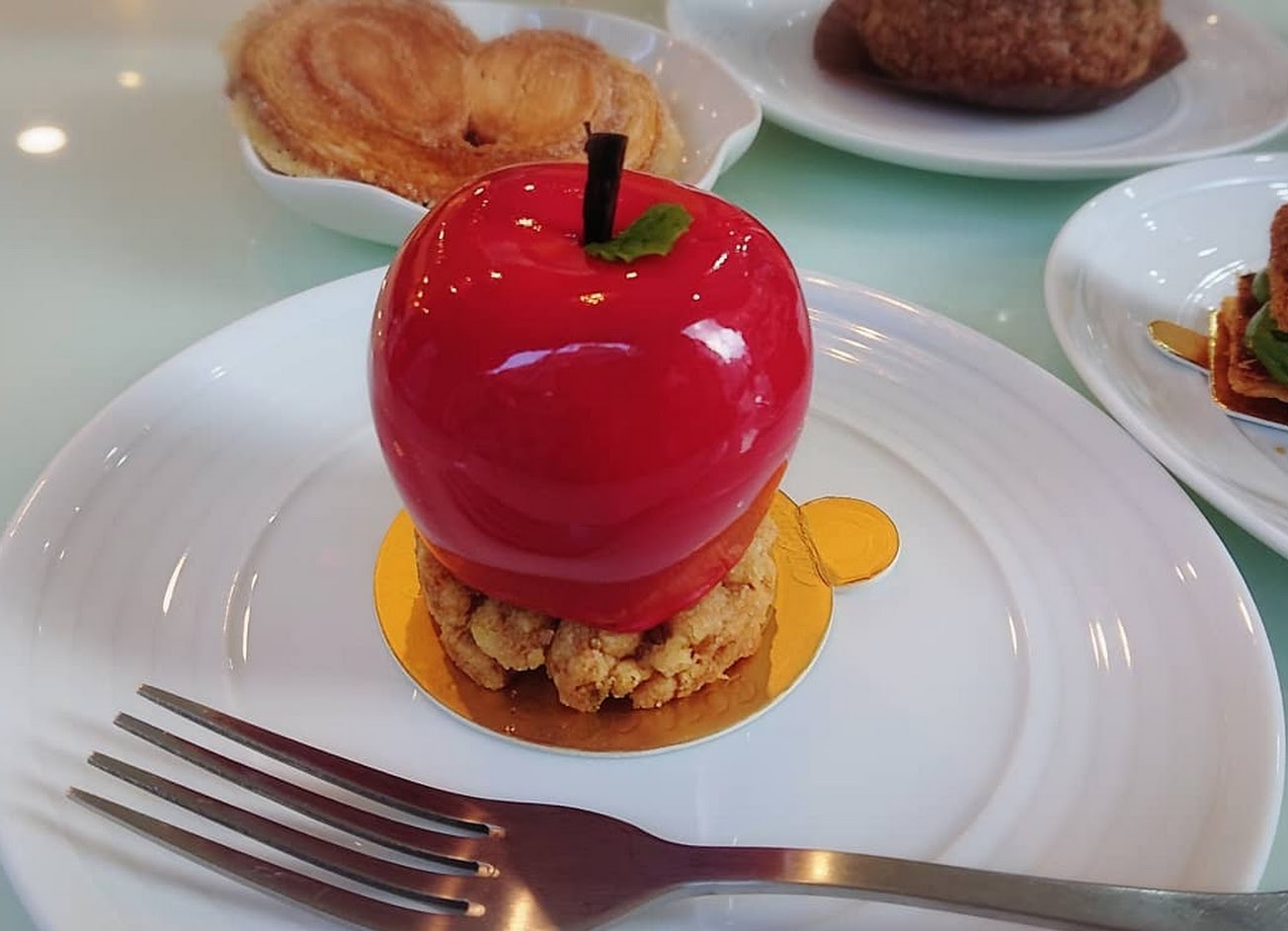紅蘋果超仿真,酸甜炒蘋果丁內餡和巧克力外皮很合拍;抹茶千層派的抹茶濃郁,餅皮酥脆,口感豐富。