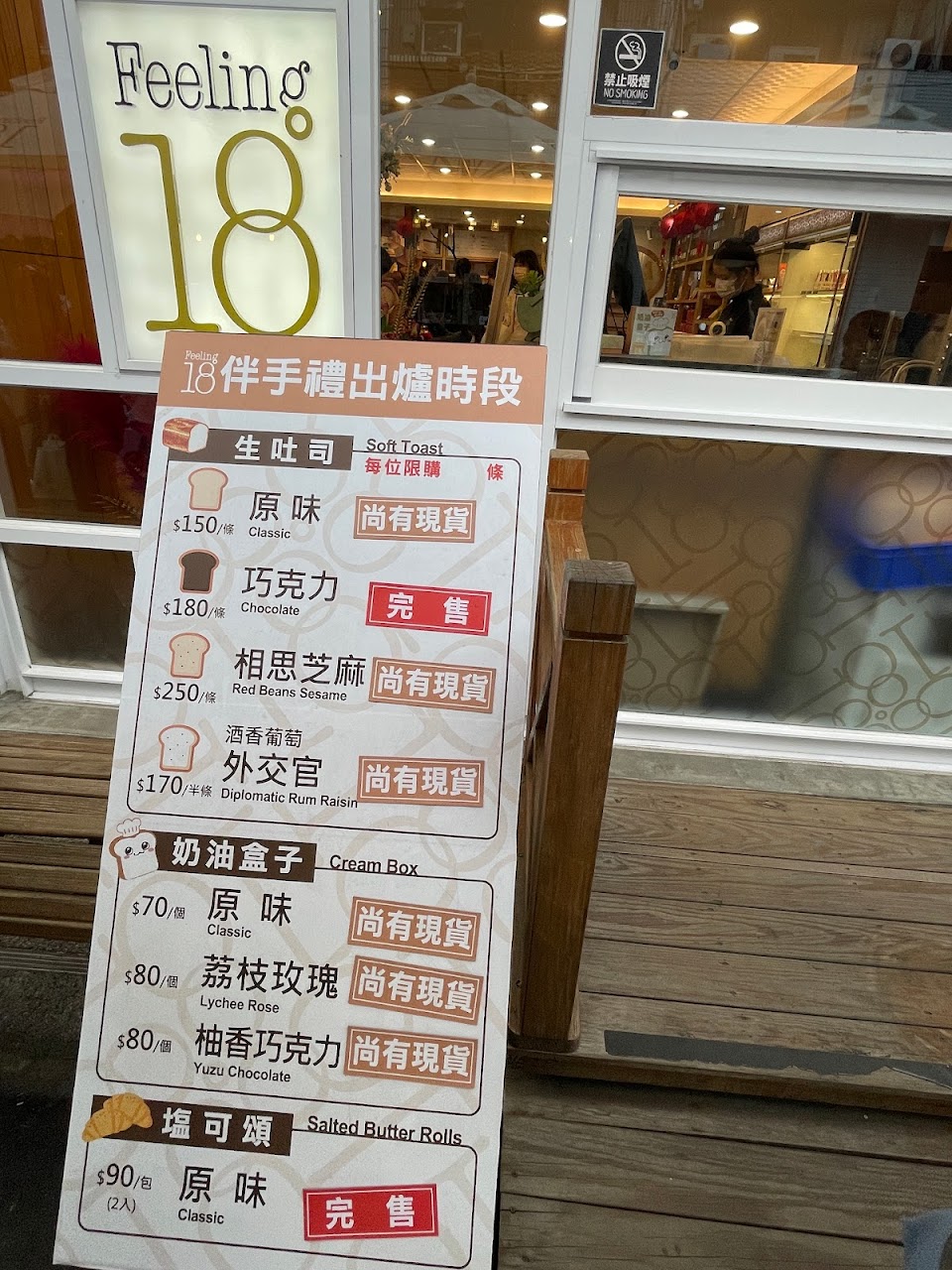 。゚ 於週末的傍晚抵達,生吐司口味剩下原味、巧克力、芝麻,可惜沒買到最搶手的外交官口味,每日出爐時段約13:30,建議不想撲空的話可以儘早去