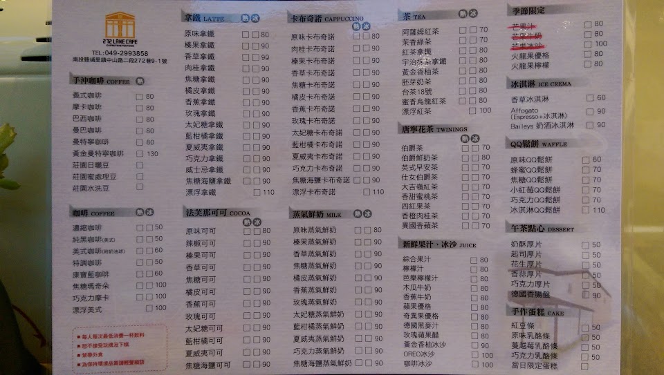 位處一個相對寧靜的角落,旁邊有相對寬敞的停車場。飲品以咖啡與茶類為主,而紅豆條味道濃鬱而不膩,是在享受悠閒氣氛時可以一併享用的甜點。