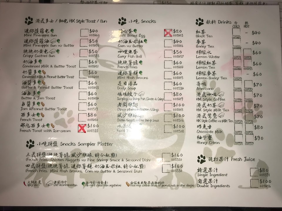 呃……本來是想給一星的,但貓貓值得加一顆。 餐點我可能是沒吃到 港式 精髓,吃到港幣的價格,我是真的不知道輕食B這幾樣東西可以賣到120,而多士麵包兩片賣60吃起來像普通的奶油烤土司,實在不知道說什麼,不然就是點錯餐了。 服務 內用 餐點類型 早午餐