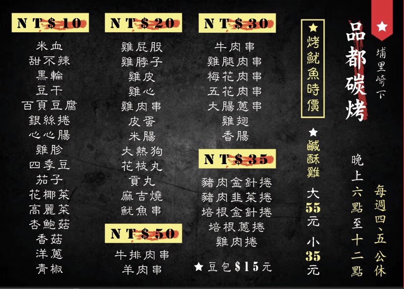2024最新在地推薦餐廳的菜單_品都炭烤的菜單、圖片