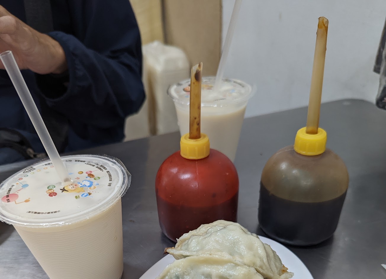有煎餃、雞蛋餅和豆漿。便宜和足夠的尺寸會令人滿意。搭配調料可以嚐到不同的味道。傳統商店。沒有花哨的裝修。然而,座位有限,很容易停放摩托車。如果您有機會訪問附近,請毫不猶豫地嘗試一下。