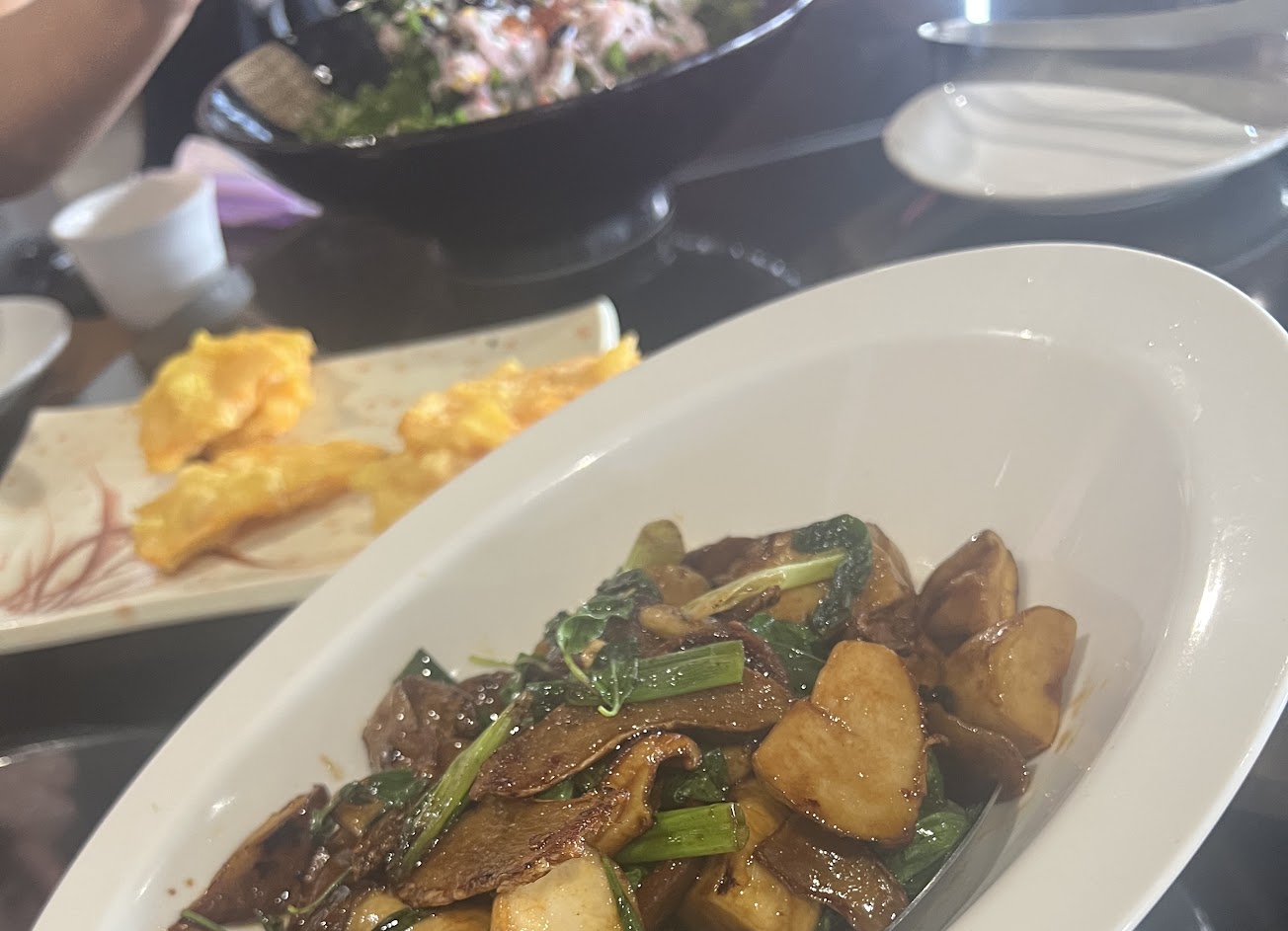 本日第一名:麻油川七,香滑順口,外面不常吃的的菜色。 本日第二名:蒜香溪蝦。炸得超酥脆,蝦頭還都有蛋,害我外帶回家後配了好幾瓶啤酒。 本日第三名:古早味鱸魚。鱸魚超大隻,肉是紮實的非常新鮮,古早味的調味也非常讚 涼拌過貓份量足,味道也不錯。 竹筍雞湯放超多超大片的紫蘇葉,味道跟外面的不太一樣,但是是好喝的。 甕缸雞表現的中規中距,招待的梅香地瓜應該是店內招牌,但本人偏愛原味的地瓜多一些。還有金沙杏鮑菇,裹著厚厚一層的金沙非常有誠意,唯獨外帶回去就不好處理了,加熱後皮過硬,跟在店裡吃的差很多?