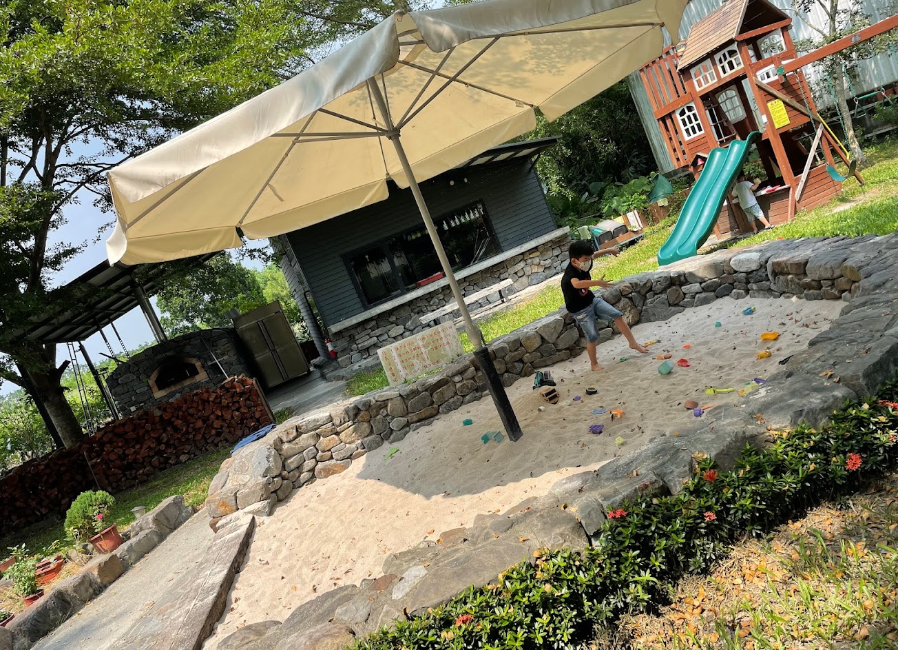 戶外環境適合孩子玩耍!來的時候平日,不用人擠人,喜歡這愜意的感覺❤️下午2點左右孩子玩沙池,老闆也很貼心,要孩子先離開,撐開陽傘讓孩子不用在大太陽下玩!是不是很貼心😘